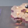 This rare lamp is made of a metal plate holding pieces of glass in different shapes and colors, giving it the eye-catching artistic style that Poliarte is famously known form. It holds a total of seven-light bulbs, creating a beautiful effect when lit. This lamp would make a wonderful addition to any interior, being a lamp and art piece in one!