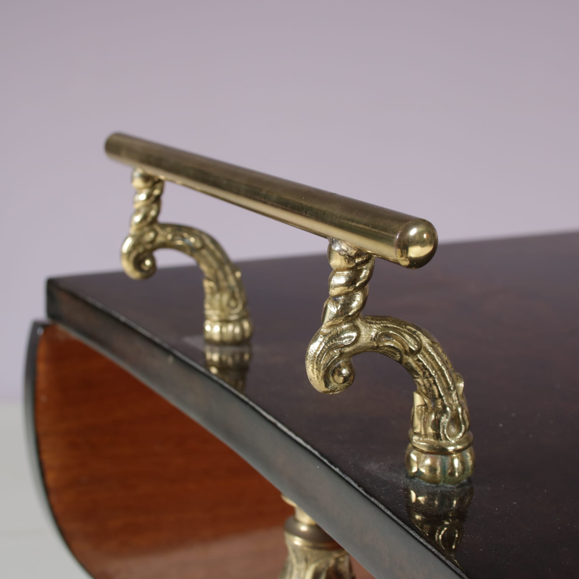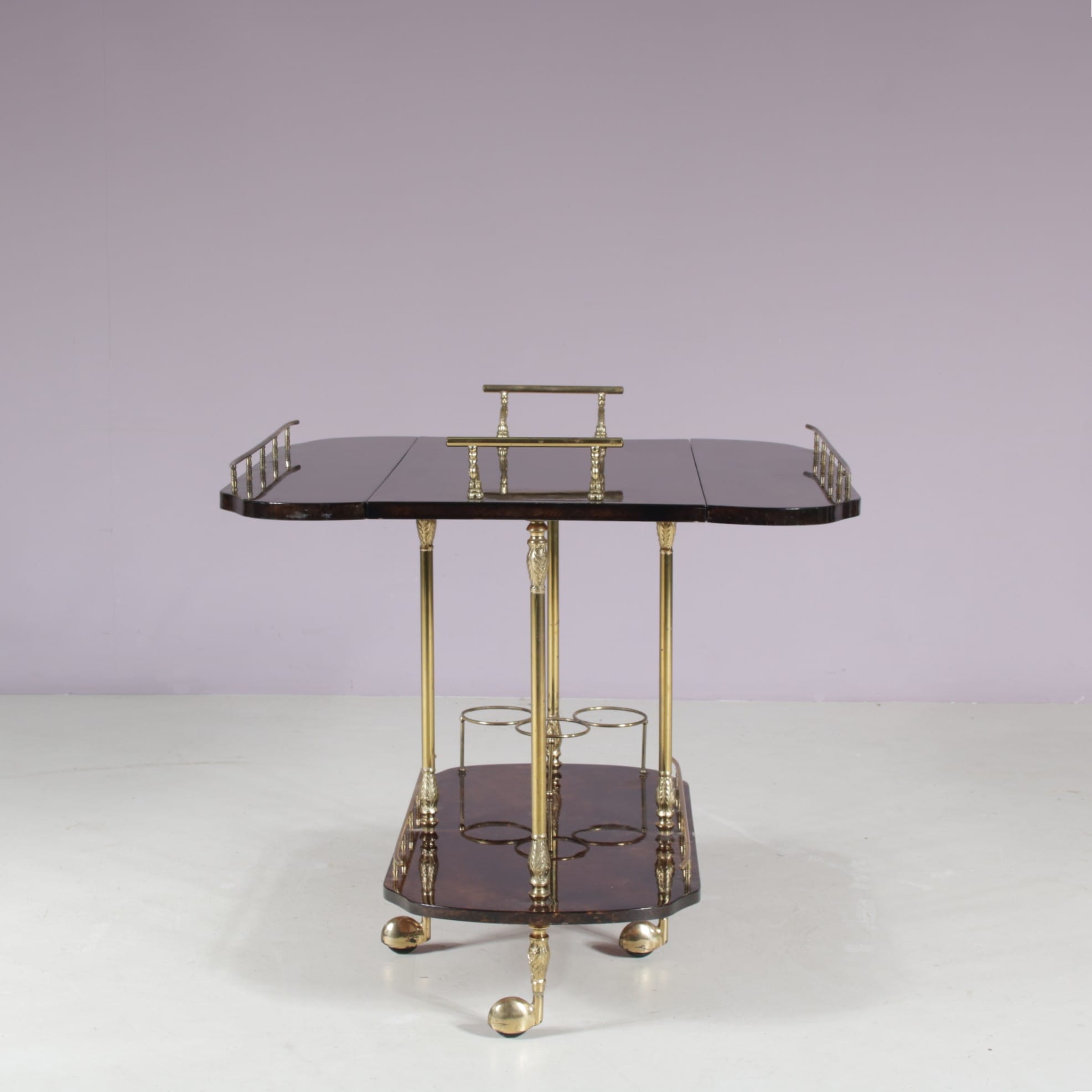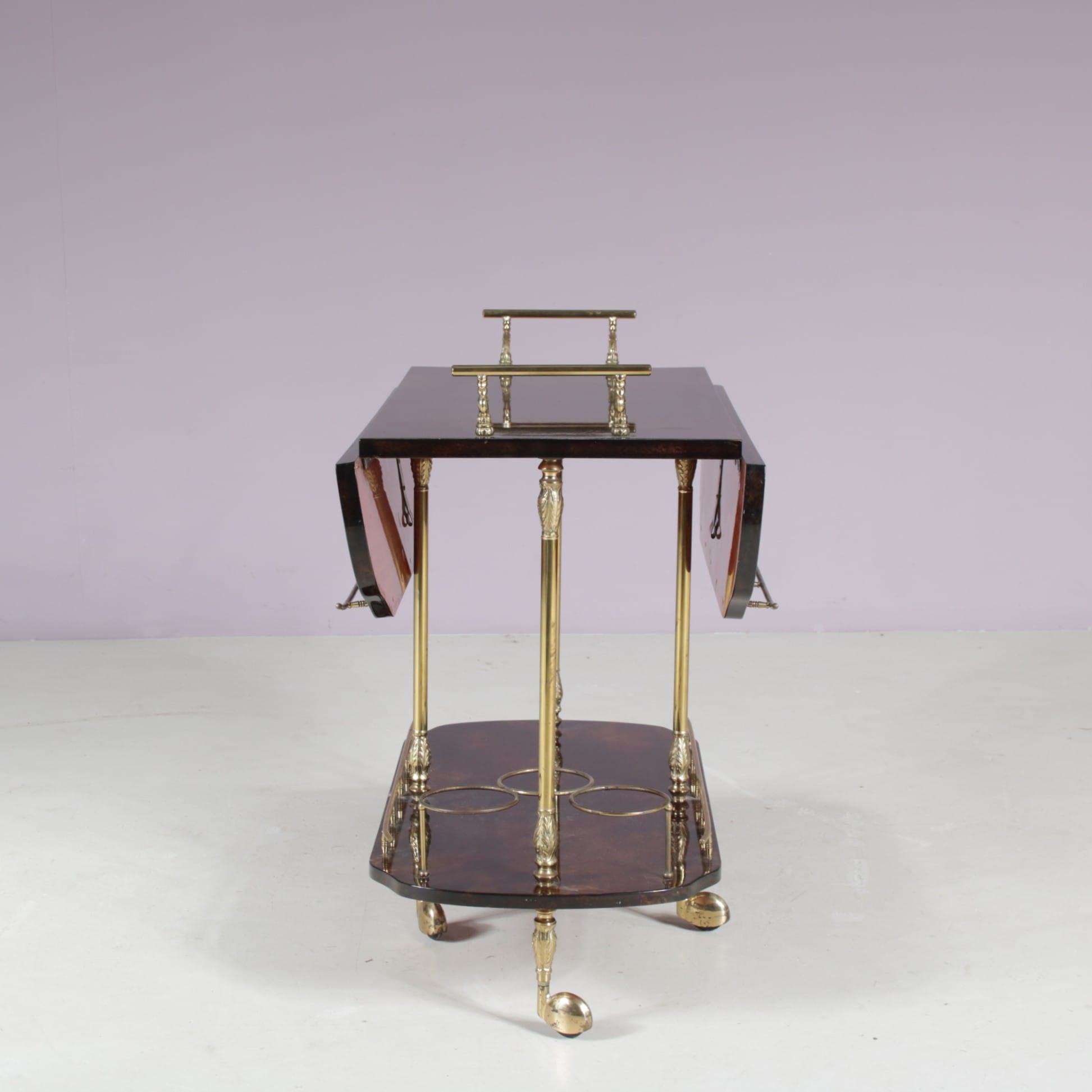 An elegant bar cart with drop leaves, designed by Aldo Tura, manufactured in Italy in the 1960s.