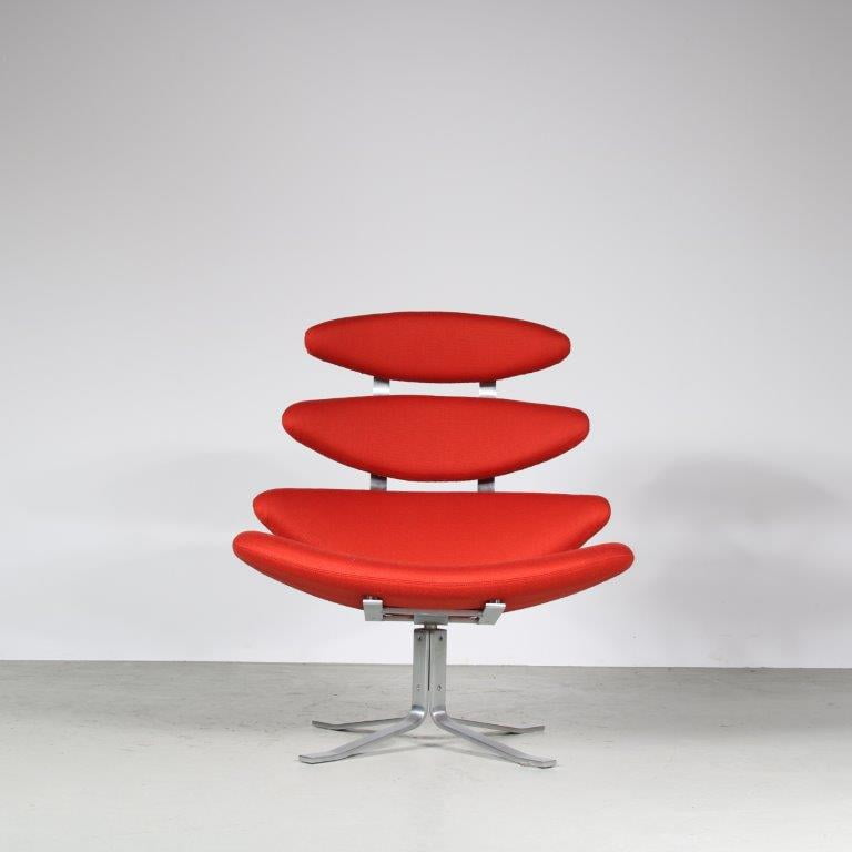 Considered Volther’s masterpiece, the Corona Chair was first designed in 1961. The original consisted of a wooden skeleton on which a series of oval cushions provided the seat and the rising back. The idea was that it would allow the body to relax in various positions. The following year, as the result of cooperation between Volther and the recently established Erik Jørgensen furniture factory, a new model with a chrome-plated steel frame was marketed in 1964. But it was still far from successful.Some 20 years later, yet another variant was presented at the furniture fair in Cologne, receiving a good press but not selling too well. Nevertheless, Erik Jørgensen’s firm persisted. In 1997, the chair was presented both at the Cologne fair and at the Scandinavian Furniture Fair at the Bella Center in Copenhagen. This time it was a resounding success. The Corona was used at the 2002 EU Summit in Copenhagen, the year after Volther died. Today, with its elliptical, blow-up cushions, it has reached iconic status, becoming Jørgensen’s most successful item!