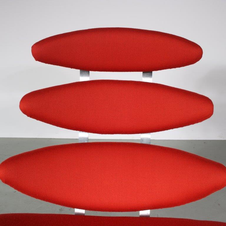 This iconic chair is made of beautiful quality chrome plated metal and newly upholstered in high quality red fabric. It’s elliptical design gives it an outstanding appearance as well as a very comfortable seating experience. This amazing chair would make a perfect addition to any mid-century / modern interior, and would also look great in an office space.