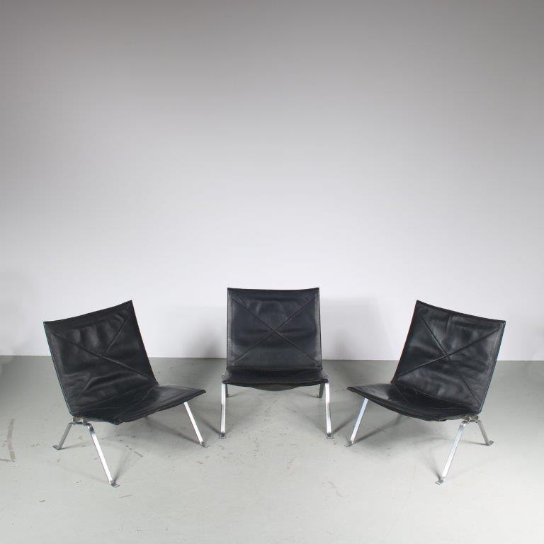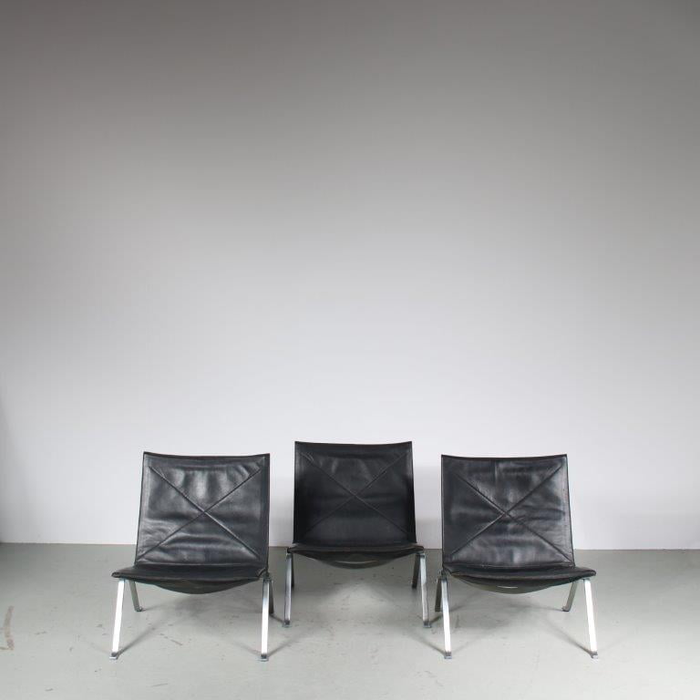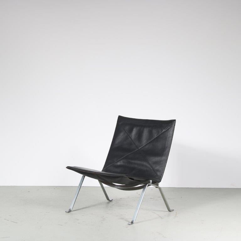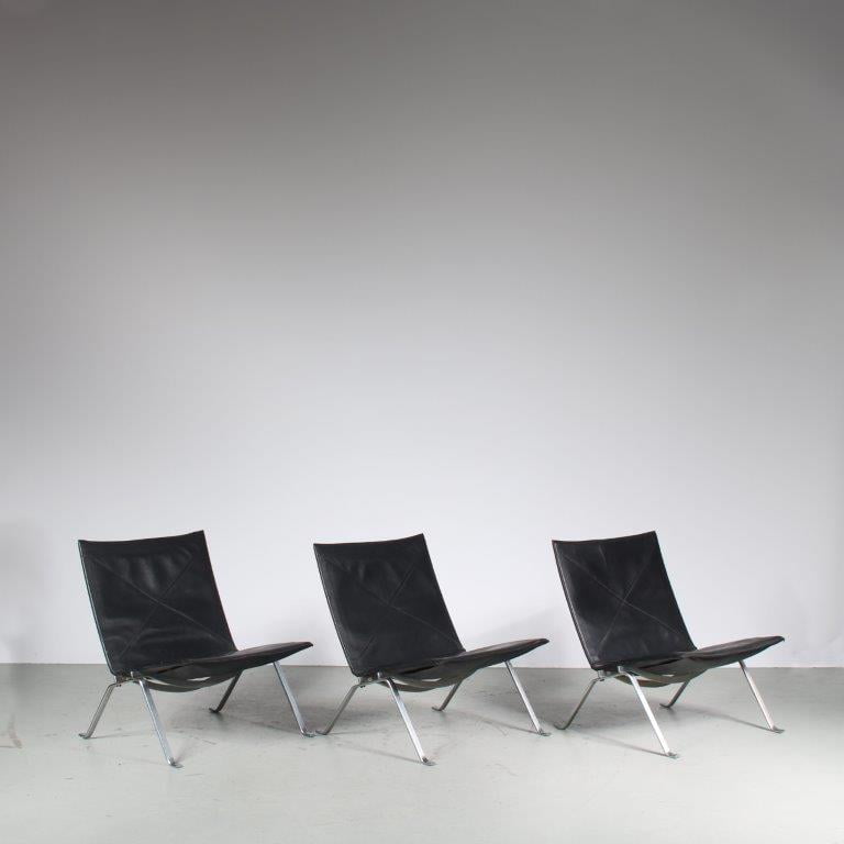 The iconic “PK22” lounge chairs designed by Poul Kjaerholm, manufactured by Kold Christensen in Denmark around 1960.