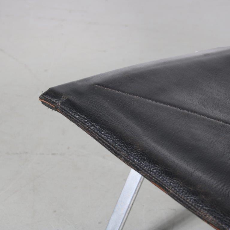 This stunning chair is made of high quality chrome plated metal holding a black leather upholstered seat. This use of materials and the smooth design give the piece it’s unique appearance, creating a true sense of vintage luxury. The backwards leaning shape of the backrest makes it exceptionally comfortable as well! This much sought after 1960s Kold Christensen edition is a truly iconic find that will definitely draw the attention in any decor!