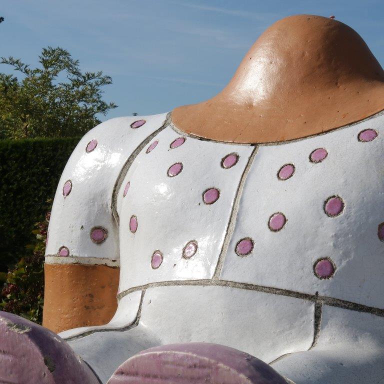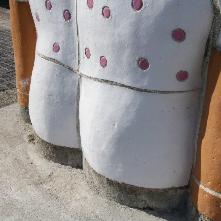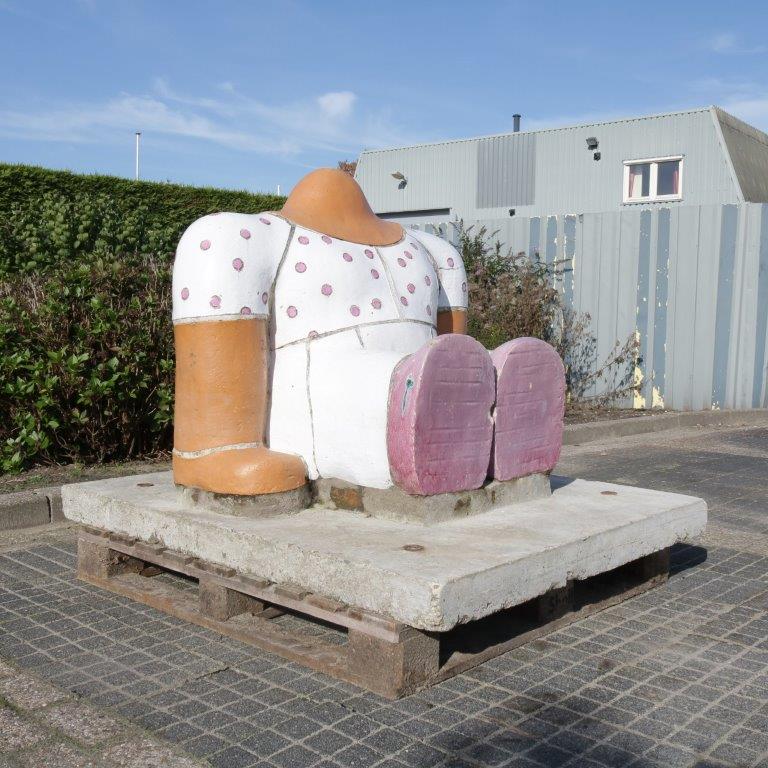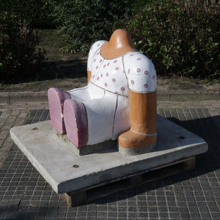 This is one of the sculptures that was made for primary school “De Kaap” in the Netherlands. They were designed in the shape as sitting persons (without heads), each with their own clothes, figure and size. The use of colourful frosted ceramics makes the pieces fun and decorative, true eye-catchers to the outdor space!